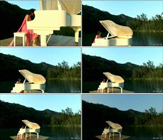 湖上弹钢琴的美女/中国高清实拍视频素材