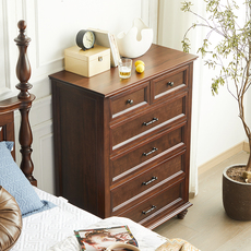 森趣美式乡村实木六斗柜复古胡桃色白蜡木储物柜收纳柜卧室抽屉柜