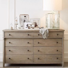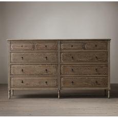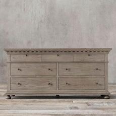 RH实木斗柜美式乡村仿古做旧橡木灰抽屉柜七斗柜客厅卧室收纳边柜