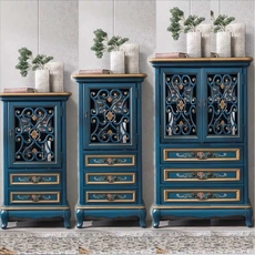 美式乡村实木复古手绘五斗柜边柜客厅立柜彩绘储物抽屉柜带门轻奢