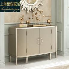欧式半XUR圆玄关台美式乡村斗柜实木弧形玄床关三抽屉柜收纳彩绘