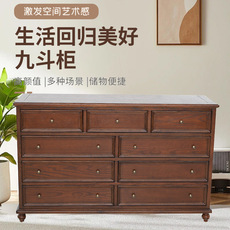 美式复古乡村老钱九斗柜客厅六斗卧室立柜家用实木靠墙餐边储物柜