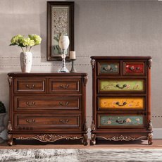美式乡村复古实木斗柜收纳柜轻奢卧室欧式五斗柜玄关柜客厅彩绘