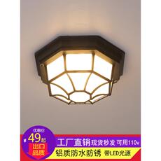 户外吸顶灯防水阳台灯门口入户美式室外走廊过道感应灯八角灯led