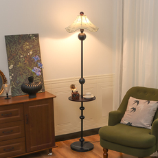 法式中古落地灯客厅沙发旁置物架美式复古卧室氛围高级感立式台灯