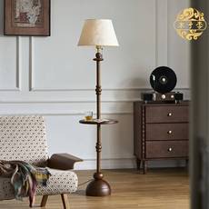 实木客厅落地灯美式复古中古风沙发旁边氛围感置物架茶几一体台灯
