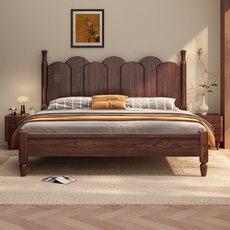 法式全实木床中古风黑胡桃木实木床现代简约家用双人床主卧大床