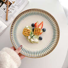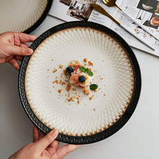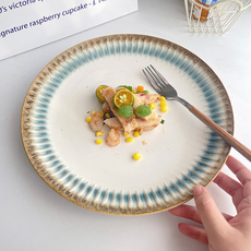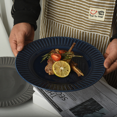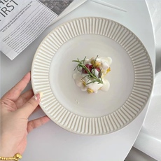 【某马逊爆款竖纹浮雕餐具】ins陶瓷西餐盘牛排平盘意面盘子瑕疵