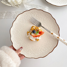【法式宫廷风奶油花边盘】ins陶瓷复古浮雕西餐盘菜盘甜品盘瑕疵