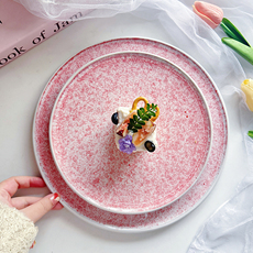 【超美纹理粉色少女心餐具】ins西餐平盘餐厅甜品蛋糕牛排盘瑕疵