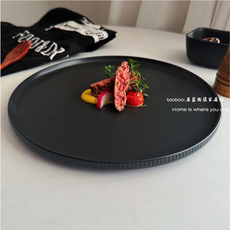 【超高级黑色竖纹哑光大平盘】ins陶瓷餐厅西餐牛排盘沙拉盘瑕疵