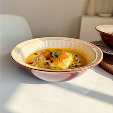 【巨美温柔韩风奶油感菜碗】ins陶瓷深盘水果碗沙拉碗意面碗瑕疵
