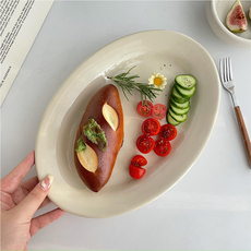 摆拍好看奶油椭圆餐盘 韩国ins风陶瓷寿司托盘早餐盘鱼盘菜盘瑕疵