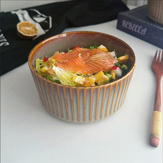【温暖日式复古竖纹浮雕碗】ins陶瓷沙拉碗泡面碗早餐燕麦碗瑕疵