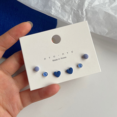 克莱因蓝陶瓷小耳钉新款独特小众设计感耳饰甜美简约爱心耳环耳夹