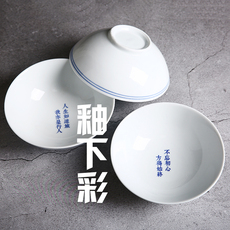 釉下彩蓝边碗定制碗6英寸复古景德镇陶瓷刻字碗豆浆碗餐具印logo