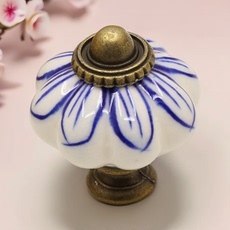 南瓜陶瓷拉手复古美式柜门单孔把手蓝花咖啡儿童柜子抽屉橱柜把手