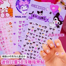 库洛米儿童指甲贴无毒无味贴纸女孩儿童玩具贴画美乐蒂玉桂狗防水迷你夜光装饰小图案荧光浮雕美甲贴画小女童