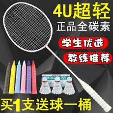 羽毛球拍正品超轻单拍碳素纤维小黑拍羽毛球拍套装全碳素5u防断线