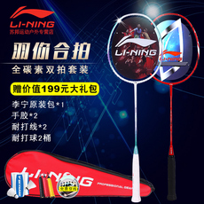 李宁羽毛球拍超轻对拍2支套装碳素复合中杆儿童成人通用家庭套装