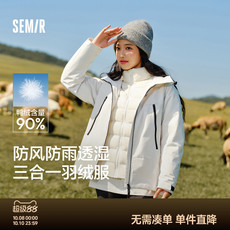 雪中飞冲锋衣女防水三合一鹅绒内胆拼色工装羽绒服冬季新款外套男