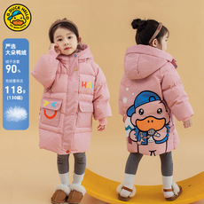 正品小黄鸭90绒中长羽绒服加厚2025冬新款男女童小儿童白鸭绒外套