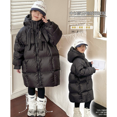 儿童中长款羽绒服韩版新款男女童中大童加厚连帽白鸭绒泡芙外套潮