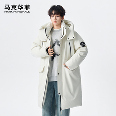 潮牌中长款羽绒服羽绒服男冬季加厚中长款派克服工装休闲潮流外套