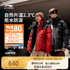 李宁火锅羽绒服丨男冬季短款棉服情侣保暖鸭绒上衣连帽运动外套女