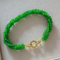 天然翡翠A货手串玻璃种阳绿色小米珠麻花手链正品绿翡翠送礼佳品