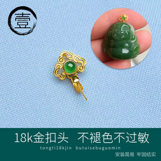 18K金扣头翡翠顶珠复古风祥云夹扣K金黄金吊坠扣项链坠卡扣
