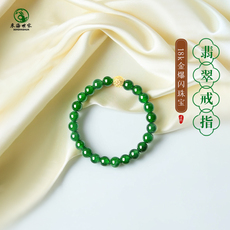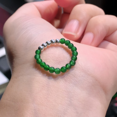 新中式复古国潮天然A货老坑冰种满绿色翡翠玉石小米珠弹力女戒指