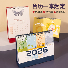 2026年简约桌面办公台历架子底座翻页日历黄历记事养生诗词桌历