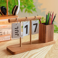 掬涵轻奢木质翻页日历台历创意装饰摆件考研计时办公室桌面笔筒