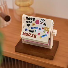 盐岛时光 2026年涂鸦机械翻页日历 实木手摇可爱桌面摆件台历礼物