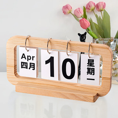 玄关中文翻页日历桌面摆件木质幼儿园日期展示牌可调拍照道具台历
