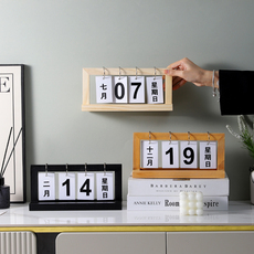 中文翻页日历桌面摆件客厅玄关装饰品木质日期展示牌可调拍照道具
