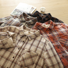 磨毛法兰绒格子衬衫女纯棉长袖宽松翻领上衣春秋冬内外套叠穿韩系