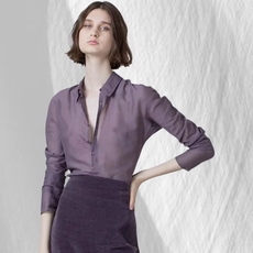 翻领熏染紫纯色衬衫女2025新款秋季长袖西支棉通勤
