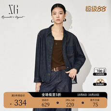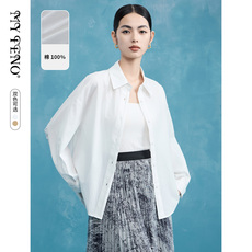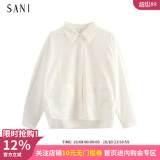 SANI商场同款2025秋翻领宽松长袖衬衫全棉拼接梭织休闲长袖开衫女