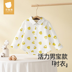 贝肽斯儿童衬衫春季男童女童衬衣翻领宝宝纯棉长袖2024新款洋气