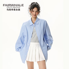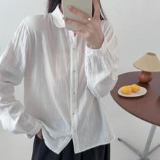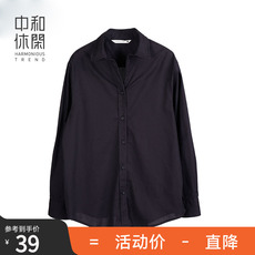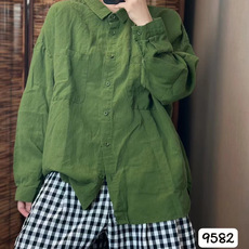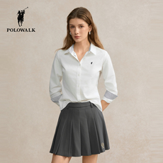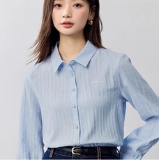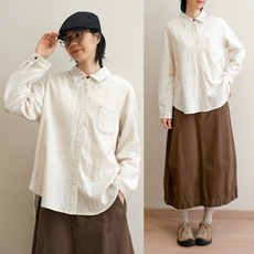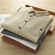 翻领长袖棉衬衫女