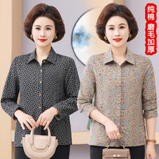 妈妈秋装长袖纯棉衬衫奶奶碎花上衣中老年人女装春秋洋气翻领衬衣