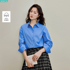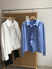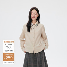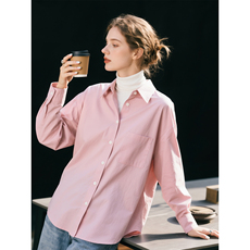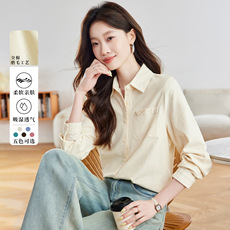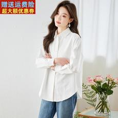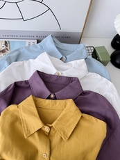 145g 全棉女士文艺翻领衬衫休闲 素米色基础款宽松长袖上衣 秋k