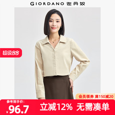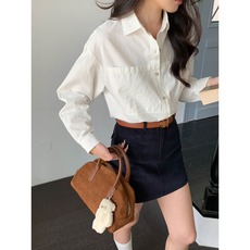 深圳南油新款进口棉百搭单排扣长袖翻领宽松高腰短款衬衫上衣女