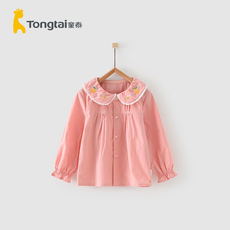 童泰春秋女宝宝长袖甜美翻领打底衫纯棉孩子纯色衬衣上衣儿童衬衫
