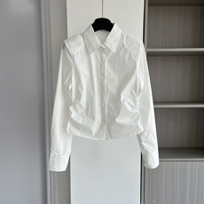 法式小众纯棉翻领长袖衬衫女2025秋季新款时尚百搭修身打底衫衬衣
