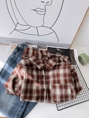 早秋新款男女童装全棉衬衫翻领长袖休闲格子衬衣复古洋气百搭基础