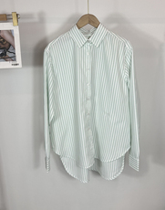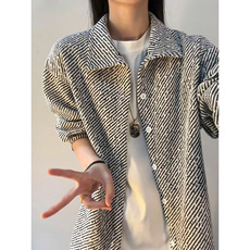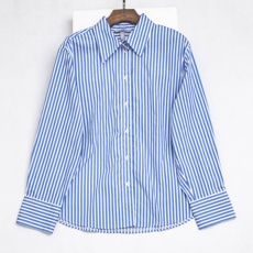 绗棉加厚竖条纹显瘦长袖衬衫女翻领百搭宽松休闲外穿衬衣85176
