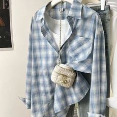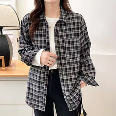 纯棉格子宽松显瘦薄外套翻领2025春季新款长袖百搭休闲女衬衫J690